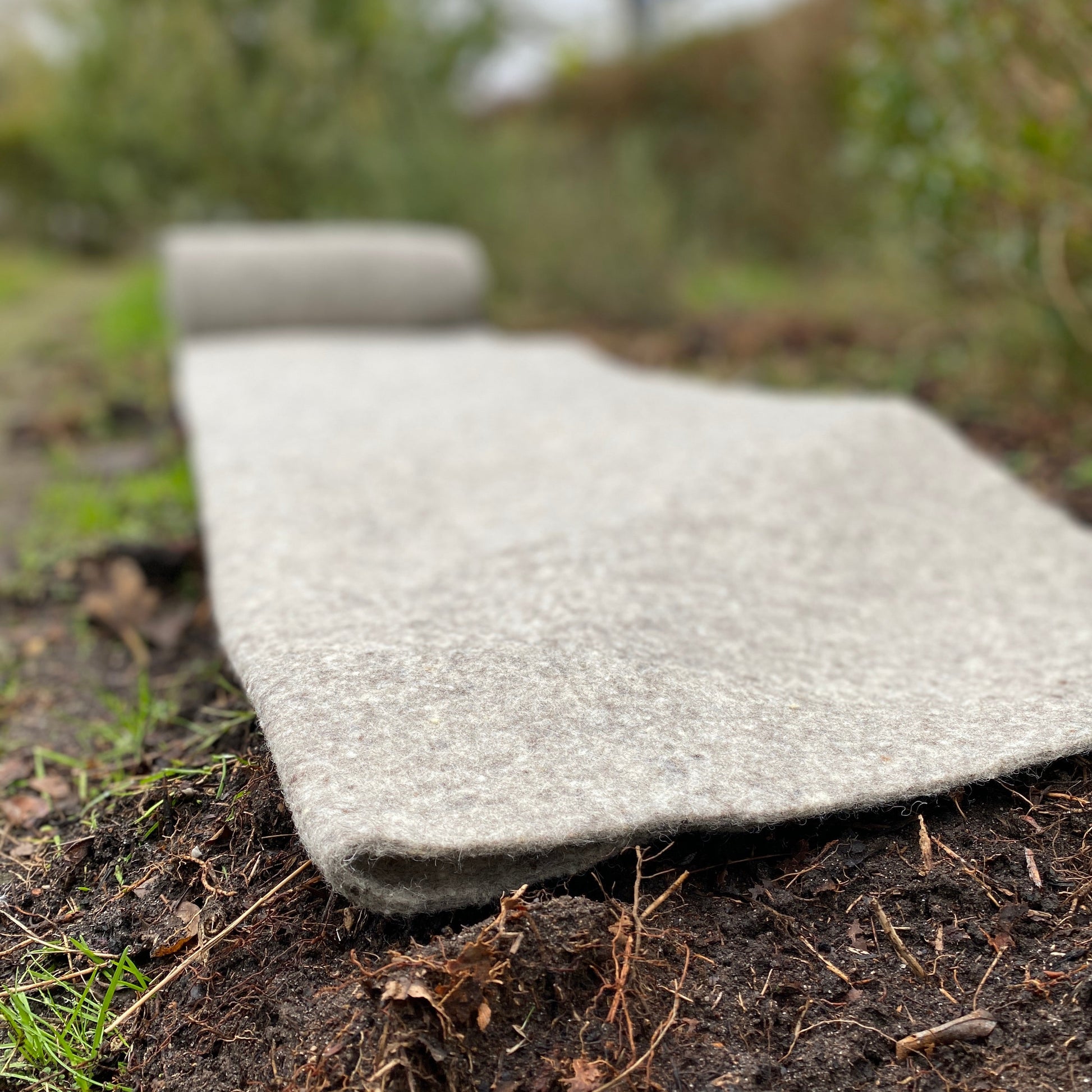 Schapenwol is volledig composteerbaar. Bij gebruik in de aarde wordt de wol na ongeveer 6 maanden afgebroken en opgenomen in de bodem. Gebruik je het op de aarde, dan blijft het langer intact en breekt het langzamer af onder invloed van weer en wind. De matten zijn gemaakt van 100% wol en daarmee een duurzaam alternatief voor plastic anti-worteldoek en andere synthetische oplossingen.